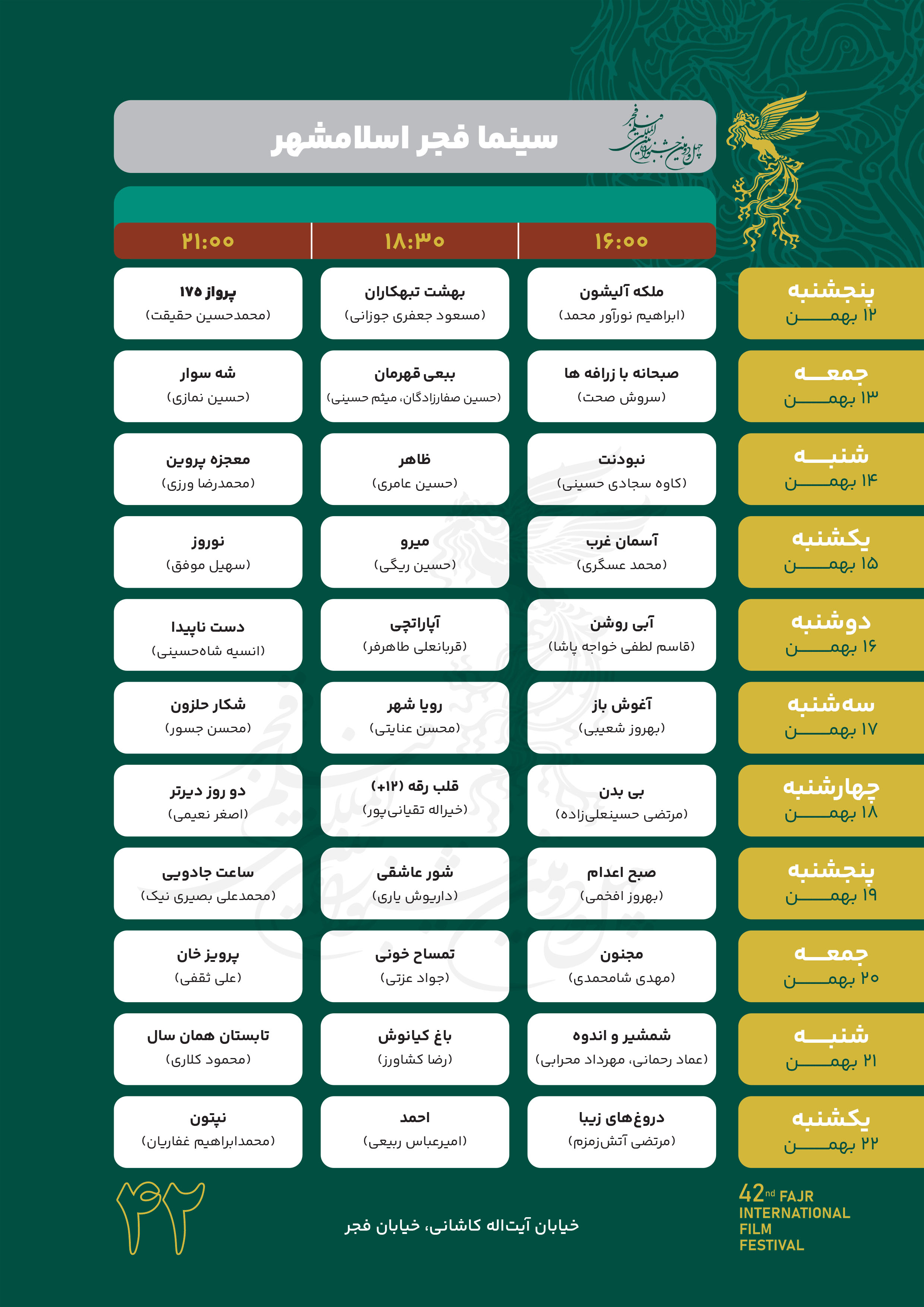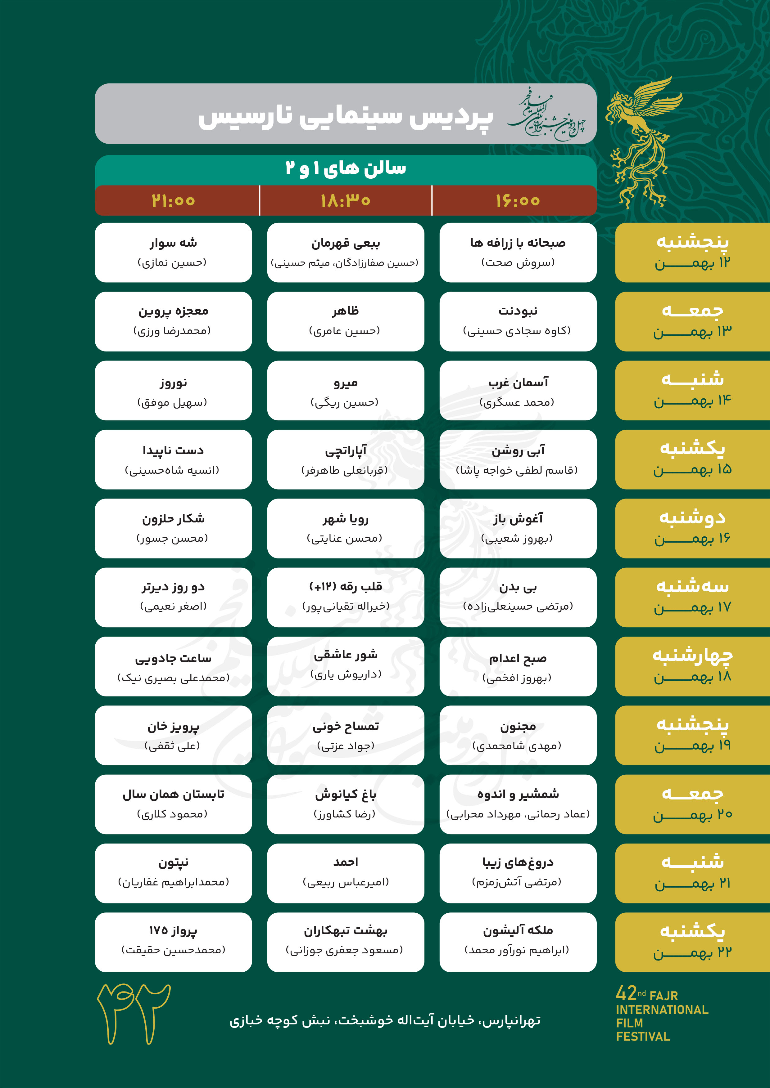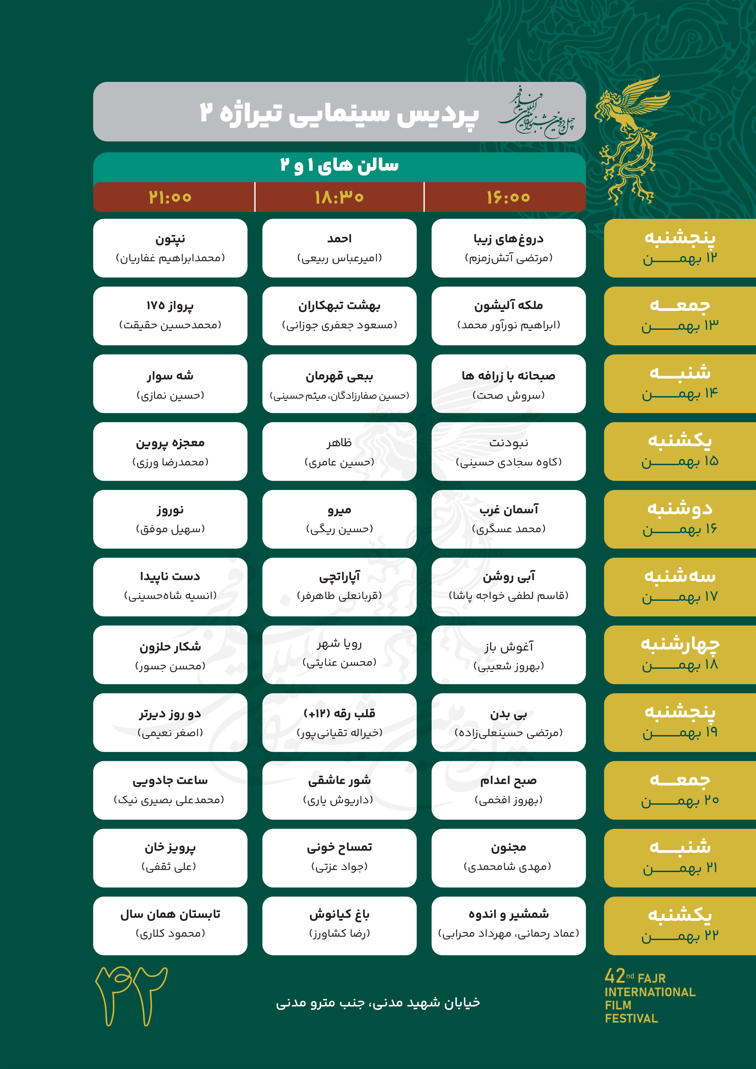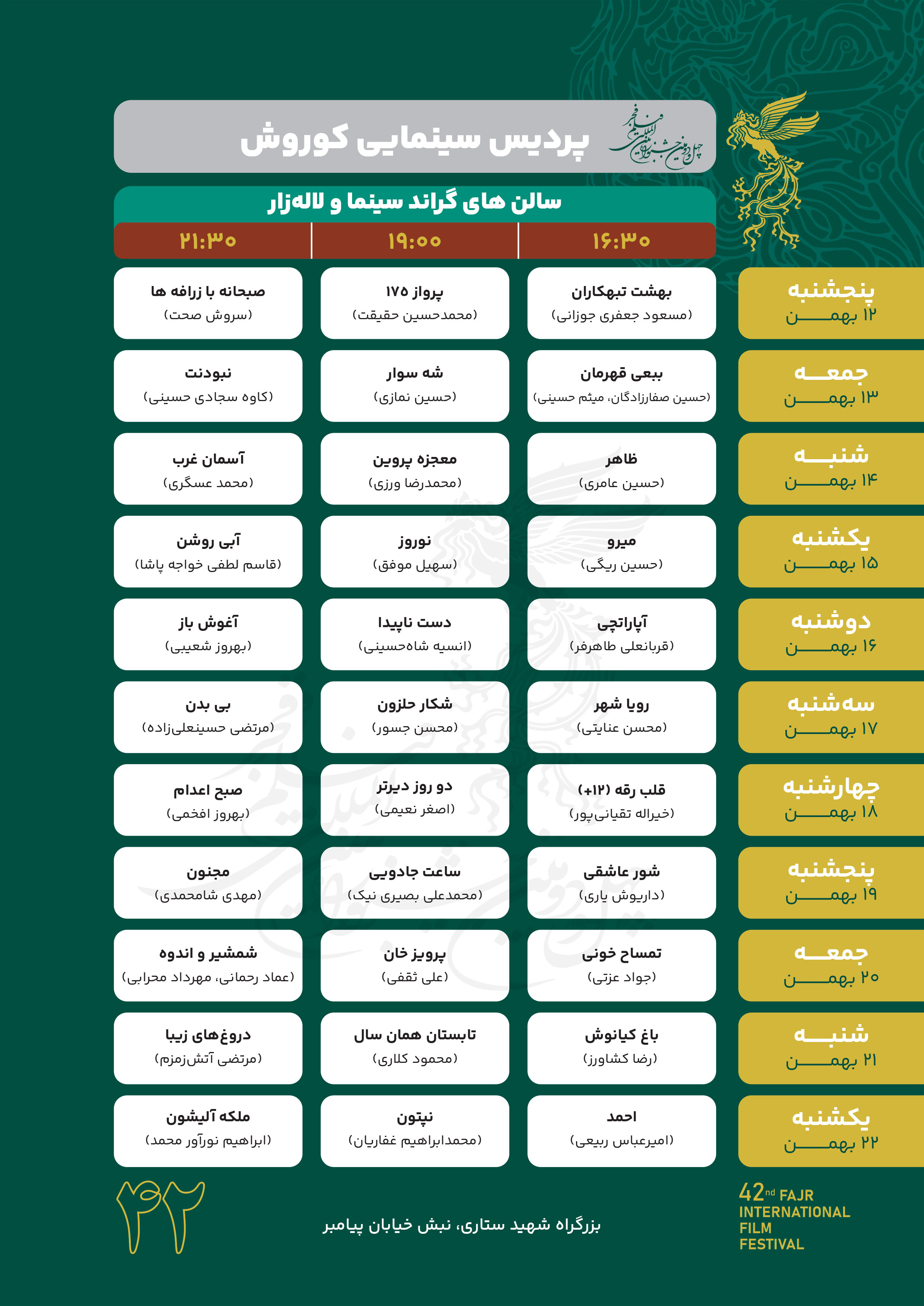 جدول اکران سینماهای مردمی جشنواره چهل و دوم فیلم فجر منتشر شد