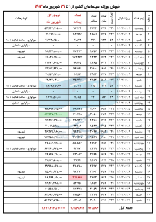 فروش سینمای ایران در شهریور ماه 1403 اعلام شد