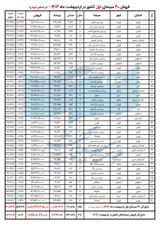 به گزارش روابط عمومی موسسه سینماشهر، 59 درصد از فروش کل سینمای ایران در اردیبهشت ماه 1403 مربوط به 40 سینمای اول کشور در این ماه بود و جمع کل فروش این سینماها بیش از 182 میلیارد و 501 میلیون تومان اعلام شد.
